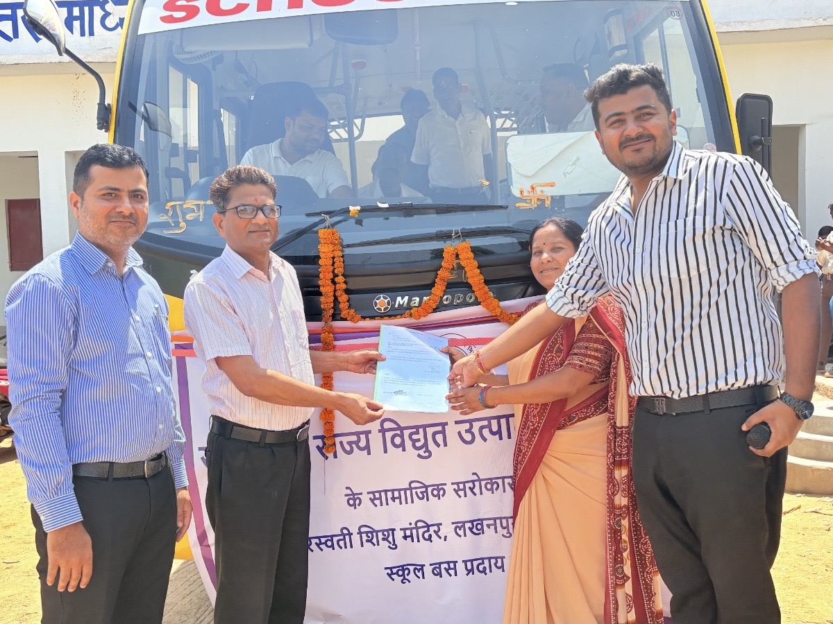 The bus was formally handed over to the school by the chief guest, Babulal Verma, Additional Chief Engineer of Rajasthan Vidyut Utpadan Nigam Limited (RRVUNL), during a special ceremony. Verma cut the ribbon and handed over the bus documents to Mrs. Madhu Pandey, the Principal of Saraswati Shishu Mandir. The event was also attended by various dignitaries, including Deputy Chief Engineer of RRVUNL, Lalchand Baresah, and senior representatives from the Adani Foundation, such as Cluster HR Head Ram Dwivedi, Head of Land Department Rajesh Sao, and Ashok Panda, Head of the Adani Foundation in Sarguja.