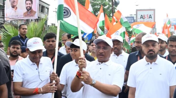 TFP Bureau, Raipur, August 14, 2025 – Chief Minister Vishnu Deo Sai on Thursday joined thousands of youth in the Independence Run held at Marine Drive in the capital, where he described the Tricolour as a “living symbol of the struggles and sacrifices of our forefathers.” The CM paid floral tributes to the statues of Bharat Mata and Rani Durgavati before addressing the gathering.